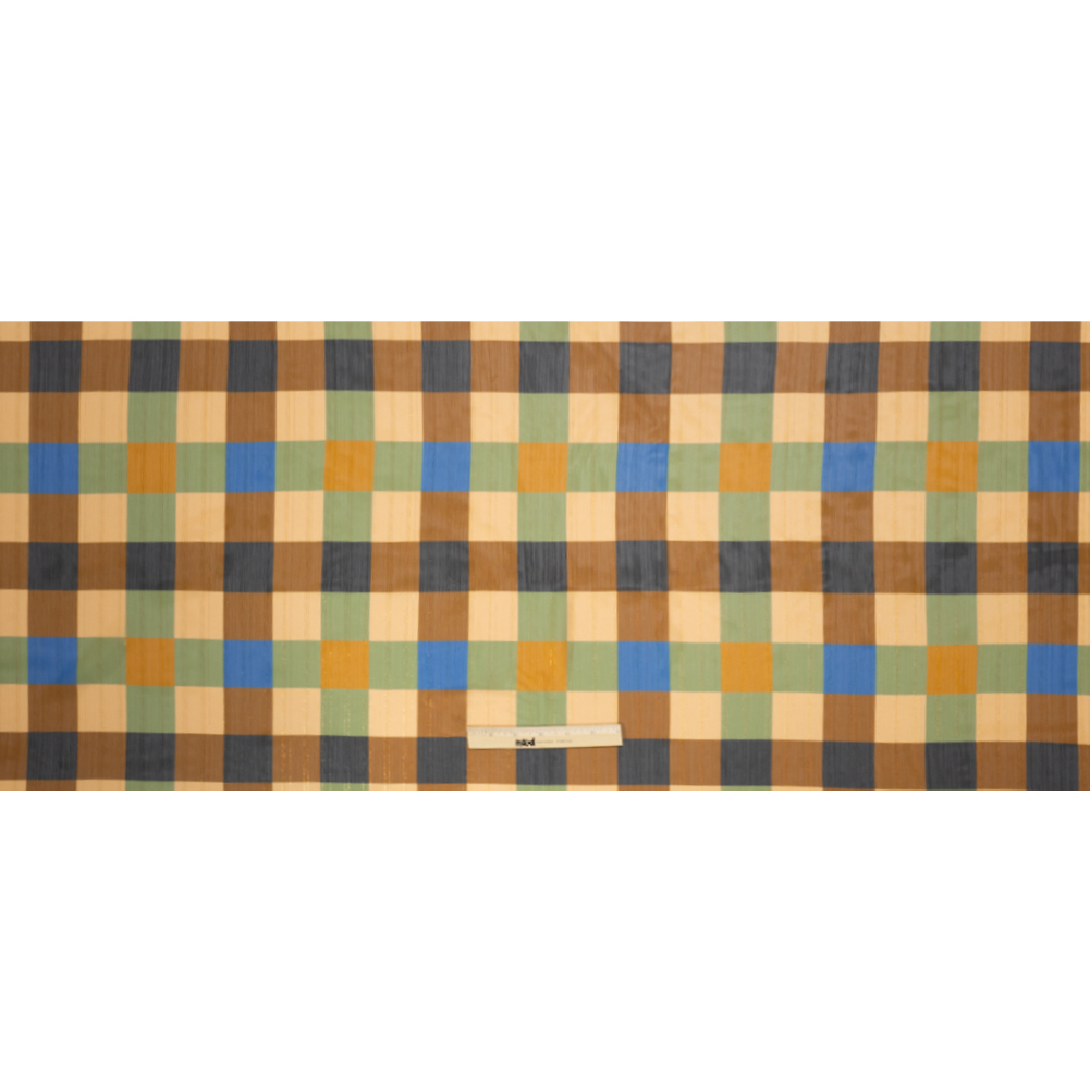 Polyester Chiffon Print with Metallic Pinstripes - Brown, Green and Yellow Plaid - Mood Exclusive Rooks and Bishops