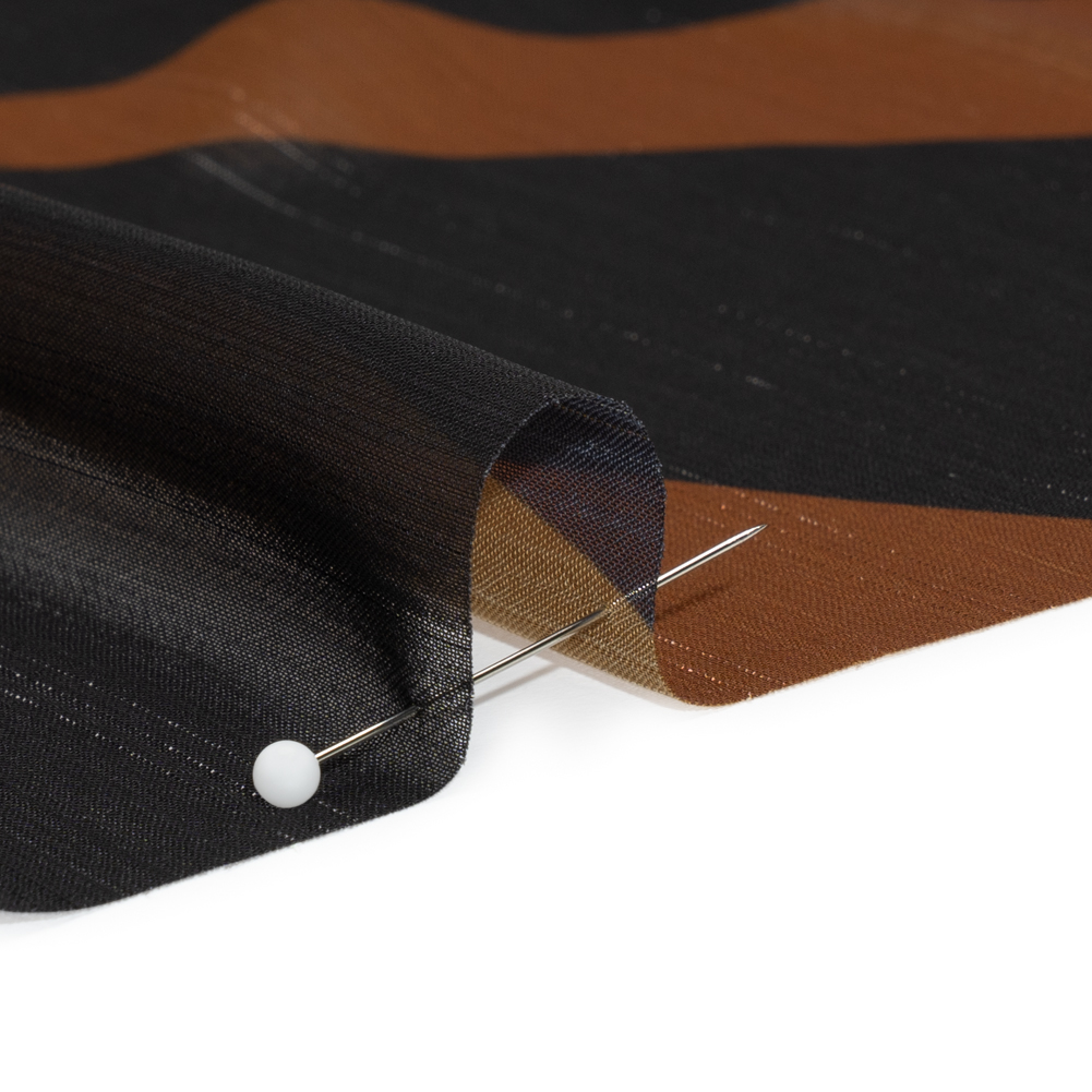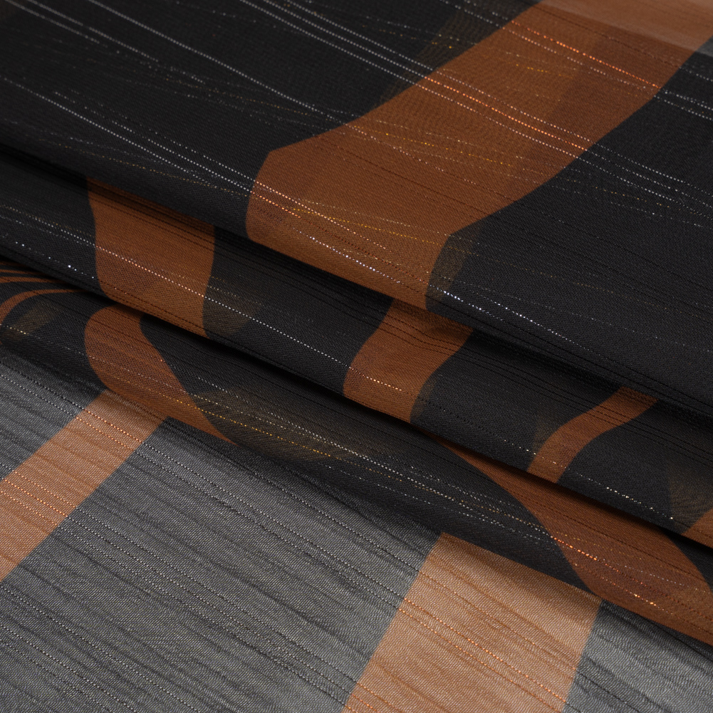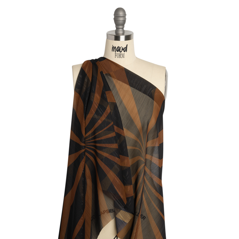Polyester Chiffon Print with Metallic Pinstripes - Chocolate Brown and Black Abstract - Mood Exclusive Fondue Funhouse