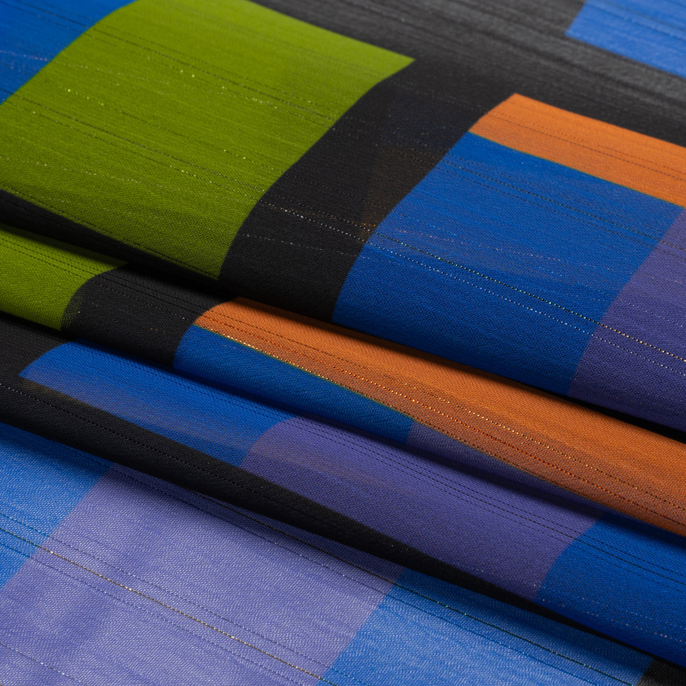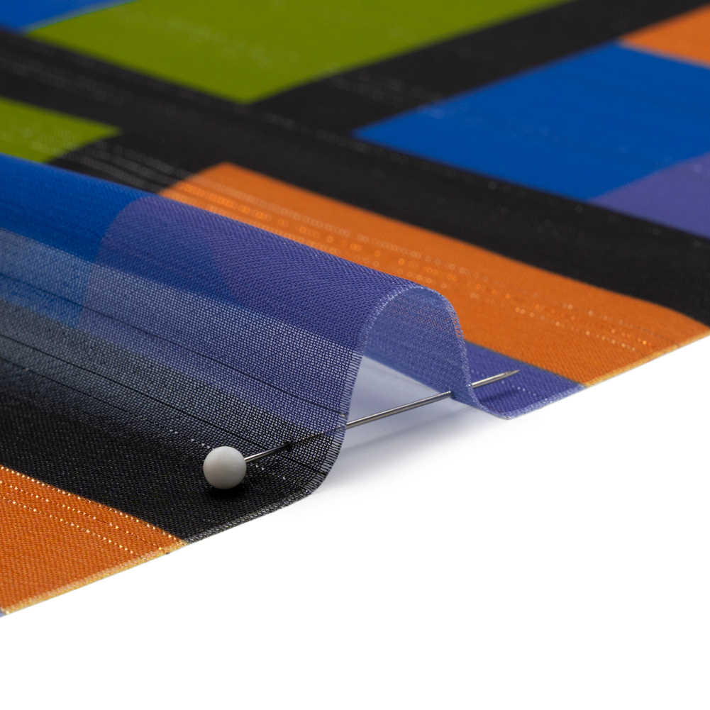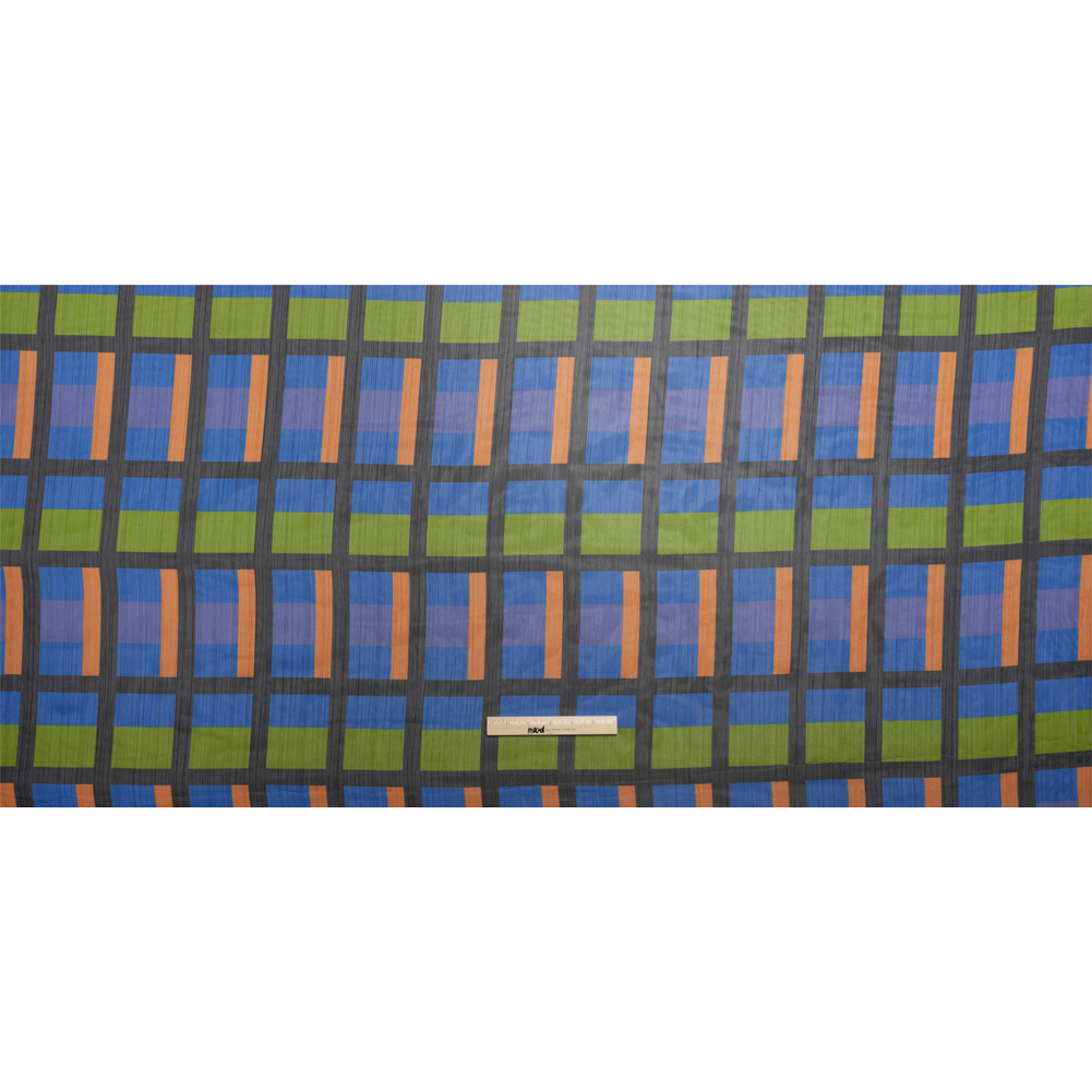 Polyester Chiffon Print with Metallic Pinstripes - Green, Orange and Blue Geometric - Mood Exclusive Through the Window