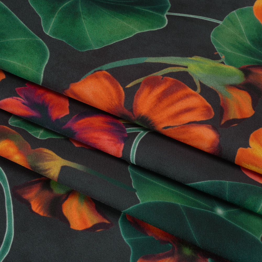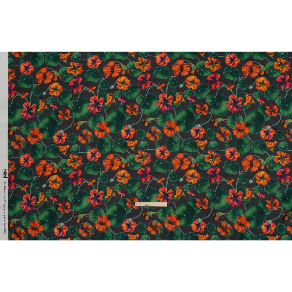 Polyester Crepe-Back Satin - Dark Green and Orange Flowers and Lily Pads - Mood Exclusive Climbing Crocus Print