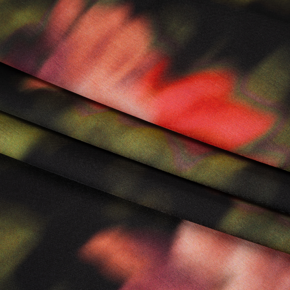 Polyester Crepe-Back Satin - Red, Pink and Green Blurred Florals - Mood Exclusive Blurring Blossoms Print