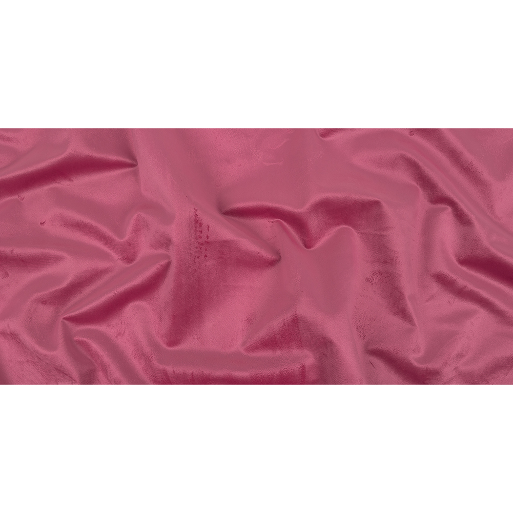 With this British Import Candy Polyester Drapery Velvet and a candy-do attitude, anything is possible! With a sumptuous sheen, a short bright pink pile covers the face of this material, with a soft backing of warm beige. Silky soft in hand with a full drape, create extravagantly luxurious drapes and curtains, or cover couches, ottomans, chaise lounges, and chairs to create a home fit for royalty! Be aware of the direction of this velvet's nap while working, as light hitting it from different angles will make it look like vastly different shades. Opaque, a lining isn't necessary for most projects.