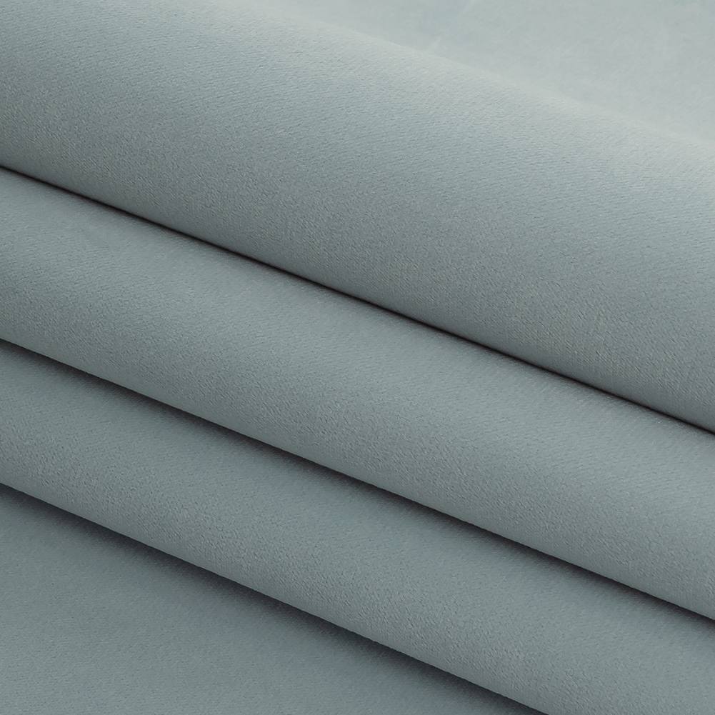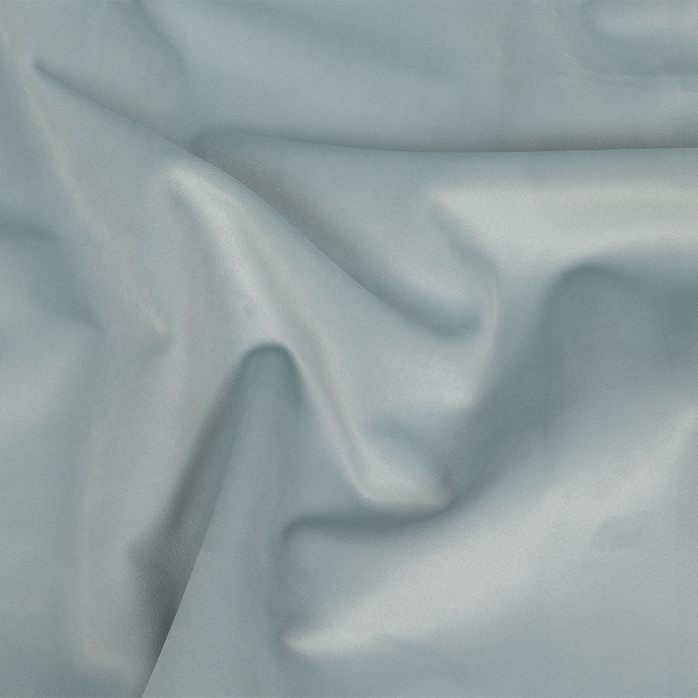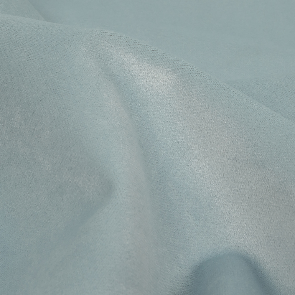 Wouldn't it be ice to decorate with this British Import Ice Polyester Drapery Velvet? With a sumptuous sheen, a short pale blue pile covers the face of this material, with a soft backing of warm beige. Silky soft in hand with a full drape, create extravagantly luxurious drapes and curtains, or cover couches, ottomans, chaise lounges, and chairs to create a home fit for royalty! Be aware of the direction of this velvet's nap while working, as light hitting it from different angles will make it look like vastly different shades. Opaque, a lining isn't necessary for most projects.