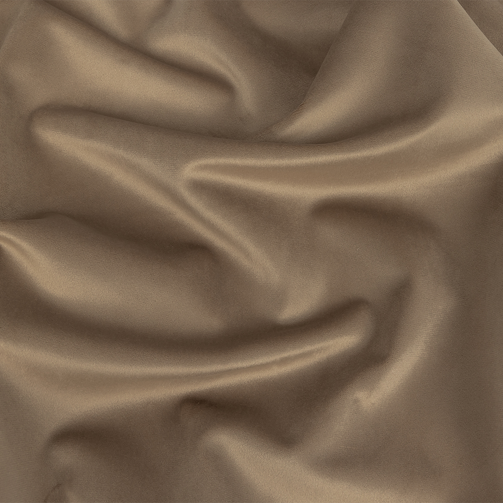Embodying its namesake in a sweet, caramelized-sugar hue, this British Import Toffee Polyester Drapery Velvet is the perfect saccharine-inspired choice! With a sumptuous sheen, a short silver-tinted beige pile—almost taupe—covers the face of this material, with a soft backing of warm beige. Silky soft in hand with a full drape, create extravagantly luxurious drapes and curtains, or cover couches, ottomans, chaise lounges, and chairs to create a home fit for royalty! Be aware of the direction of this velvet's nap while working, as light hitting it from different angles will make it look like vastly different shades. Opaque, a lining isn't necessary for most projects.