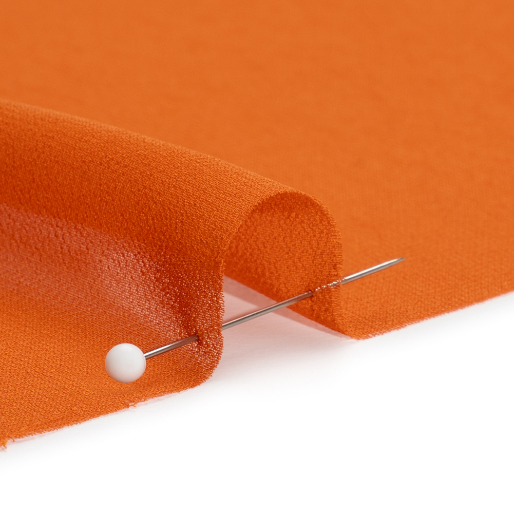 Stand out in this Burnt Orange Polyester High-Multi Chiffon! Featuring a light, airy drape and grainy hand, it’s a sheer delight to work with!Suggested Projects: Blouses, Lingerie, Dresses, SkirtsContent: 100% PolyesterStretch: NoneOpacity: SheerThis burnt orange chiffon is a hot ticket item. The light and airy drape brings an ethereal feel to any silhouette, seen most often as blouses, lingerie, scarves, and overlays in formal dresses and skirts. The sheer, burnt orange face boasts a grainy hand. With or without a lining, consider chiffon for your next in-office workday, date night, prom, or formal event!Pair premium quality with affordability in our Exclusive Basics Collections! Explore colorful polyester chiffon and more, perfect for creating special occasion looks on a budget.