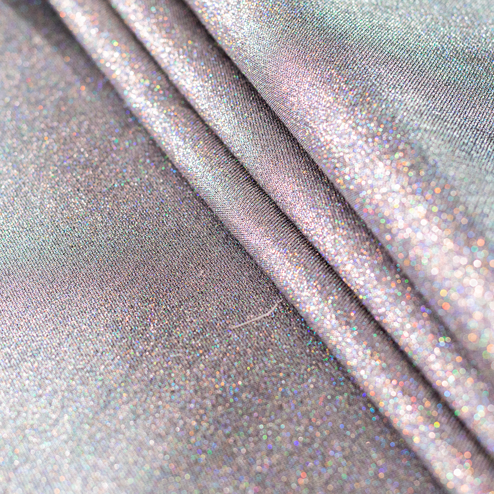 This Metallic Rainbow Polyester Lame is like a pot of gold at the end of a rainbow. A crisp, textured hand, a modestly structured drape, and a beautiful shimmering face make this material perfect for jazzy jackets, fuller dresses, costuming applications and more. Slightly sheer in construction, a lining may be used for additional structure or comfort if desired.