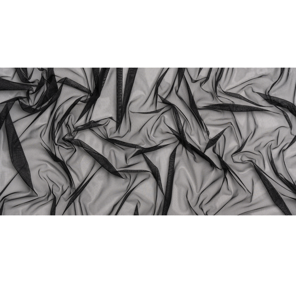 Light some candles and fill some wine glasses to spend the night in this Black Polyester Mesh, featuring a soft, tactile hand and supple drape.Suggested Projects: Pantyhose, Slips, Bras, LingerieContent: PolyesterStretch: 25% WeftwiseOpacity: SheerRomantic nights deserve an equally romantic look—and this black mesh is surely the answer to your prayers. Mesh is often used by manufacturers for control-top pantyhose, control slips, long-line bras, long-line panties and other garments designed to smooth the figure. Although more often seen in women's under-garments, men use mesh fabric, as well. This specific mesh is tactile yet soft and has a supple drape. Sheer, we recommend use with a lining or as an undergarment.