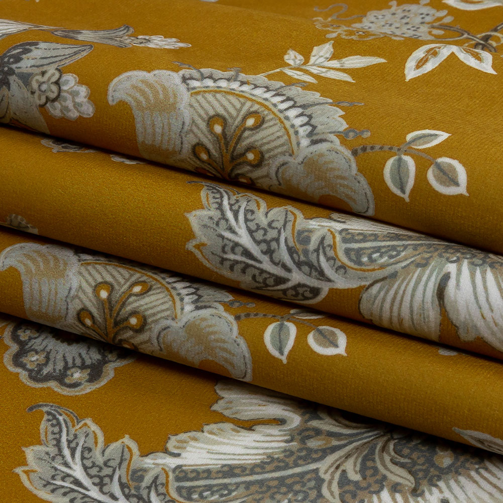 Polyester Microvelvet Print - Ochre Jacobean Floral - British Imported