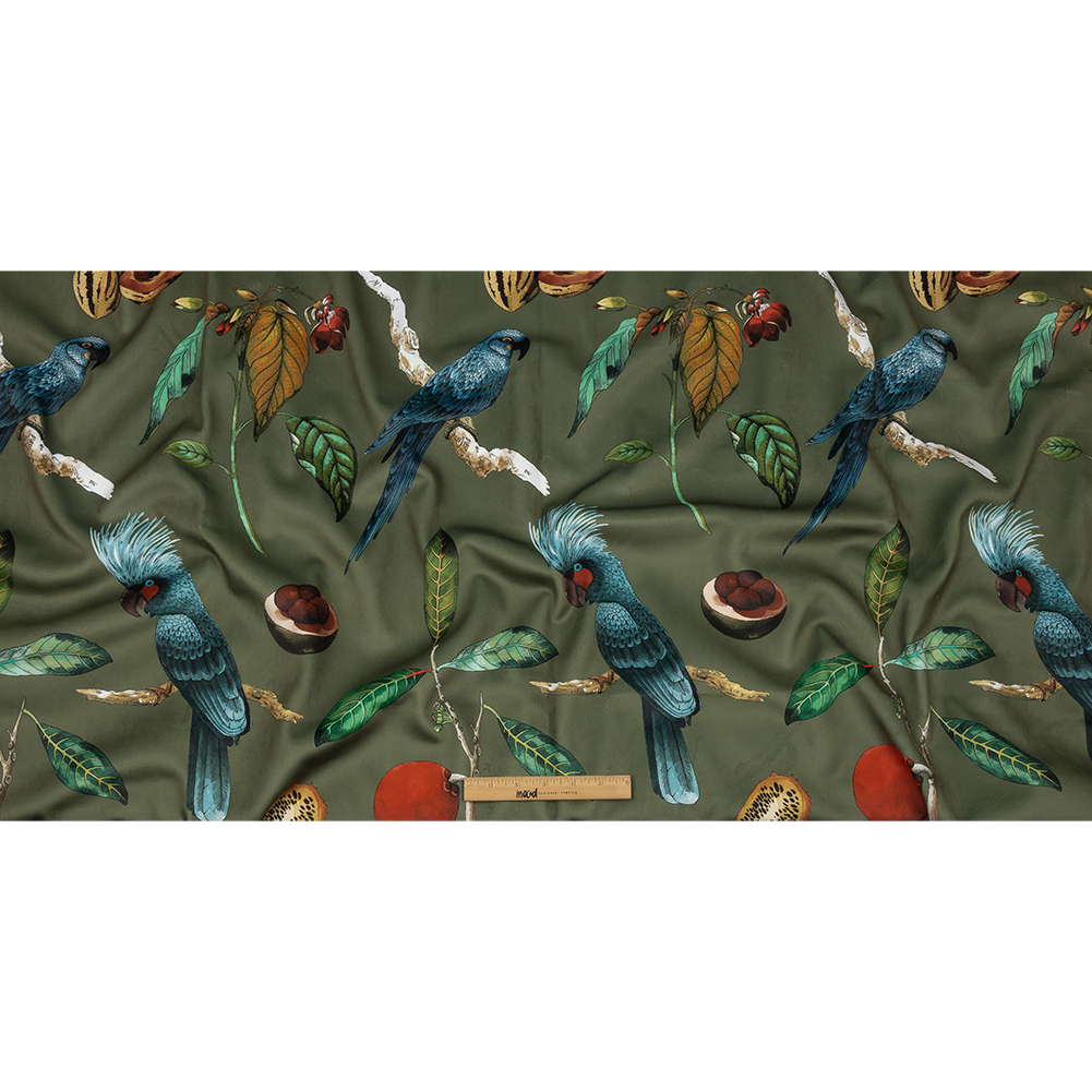 Let us extend the olive branch with this British Imported Olive Cockatoo Printed Polyester Microvelvet.