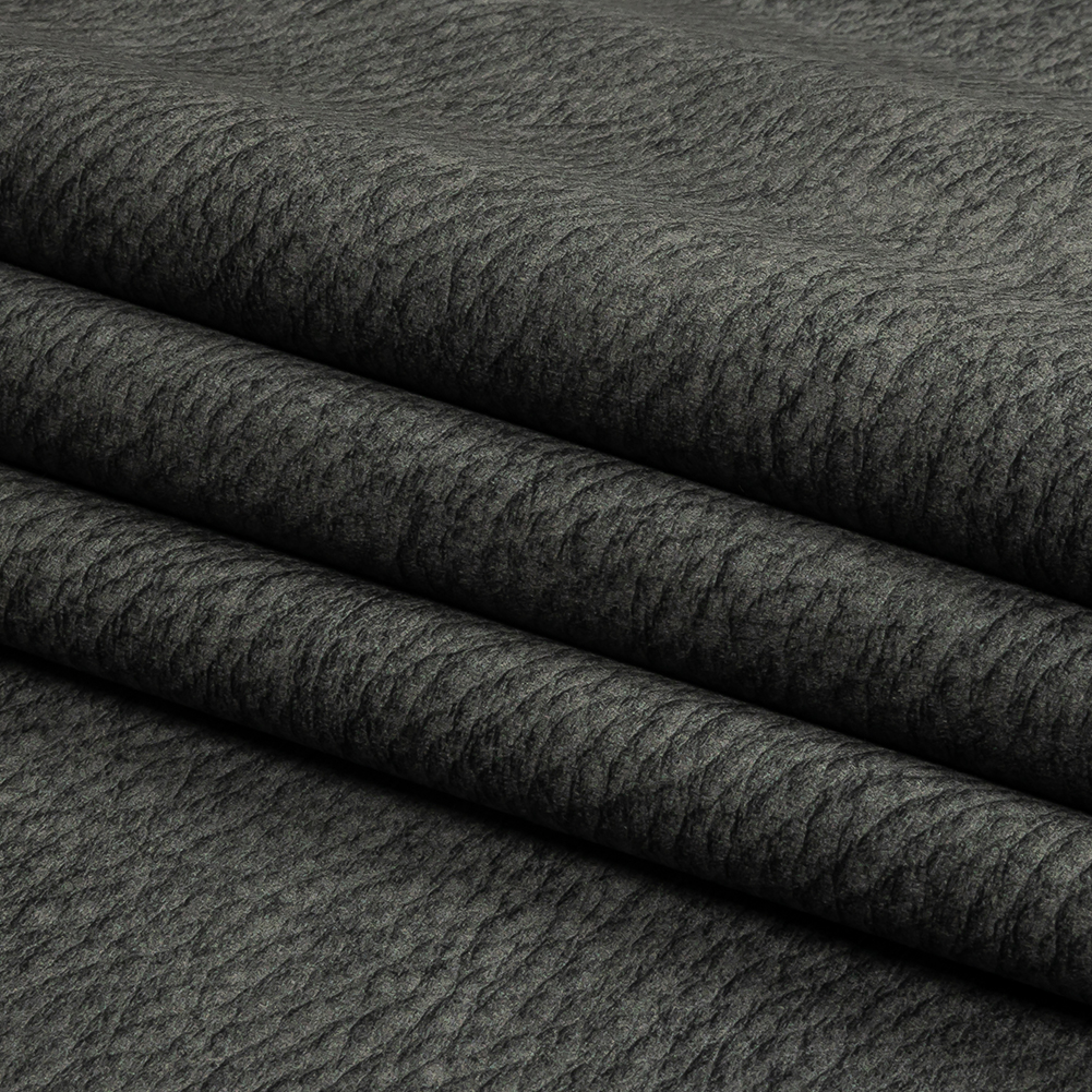 Looking for a dark neutral to work into your minimalistic room? We recommend this British Imported Slate Abstract Polyester Microvelvet for an effortless and simple finish! Smooth as can be with its short pile, this woven features a crinkled pebbly print reminiscent of old leather in a dark gray hue.