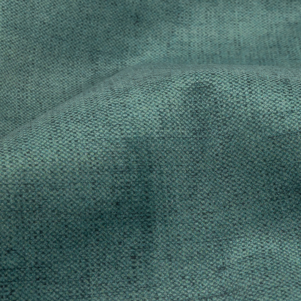 If you’re searching for a serene shade of blue that will gift you its calming essence, this British Imported Spa Polyester Microvelvet is peaceful perfection! An exceptionally soft, very short, dusty green-tinted blue—almost teal—pile with varying darker hues covers the face of this home decor velvet, providing a fuzzy, velvety texture without being notably plush—the reverse features a loose plainly woven white backing for extra durability.