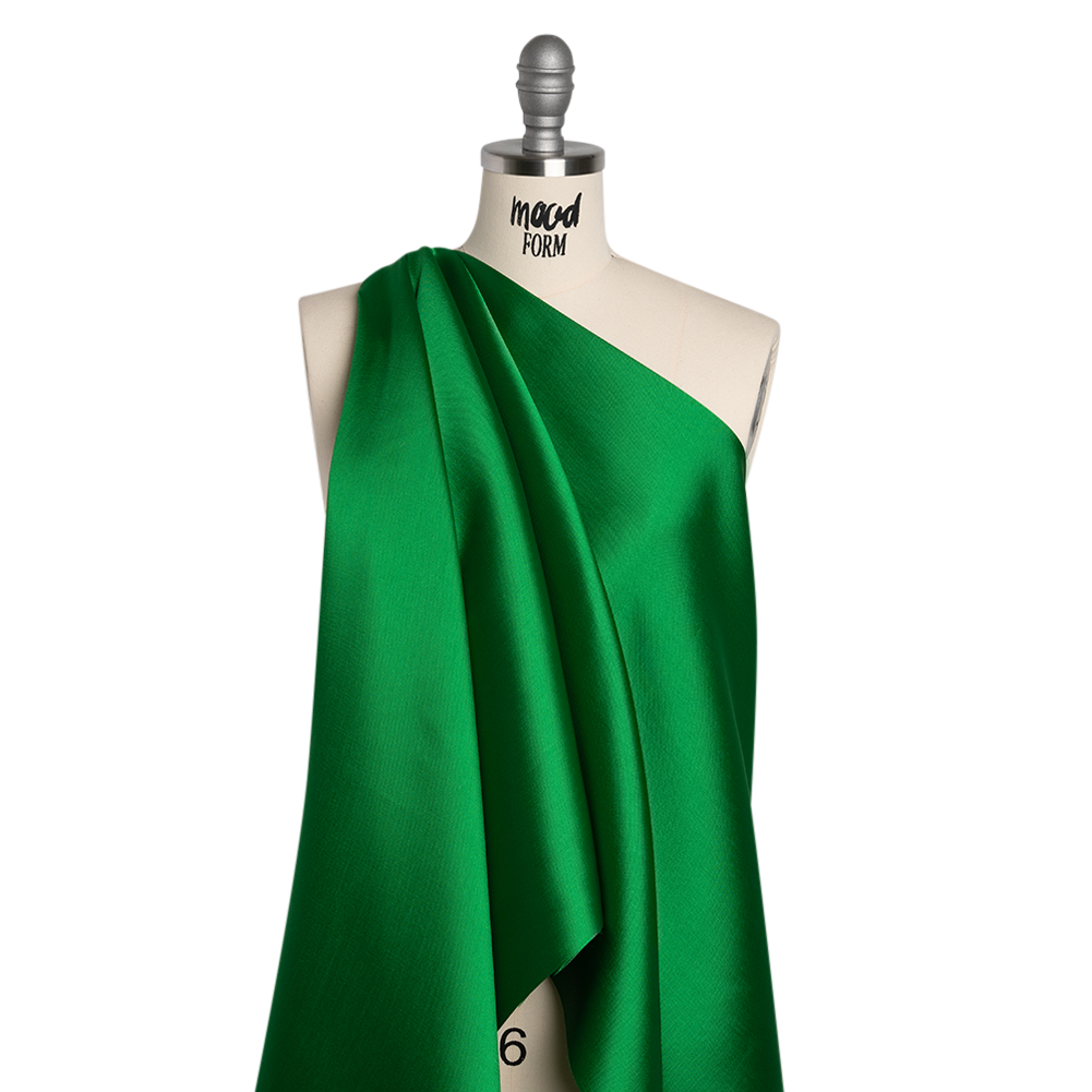 Your green thumb will let this Kelly Green Polyester Mikado grow to its full potential—featuring a sleek hand and voluminous drape.Suggested Projects: Gowns, Blazers, Trousers, JumpsuitsContent: 100% PolyesterStretch: NoneOpacity: OpaqueElevate the elegance of your eveningwear with this polyester mikado. Both sides feature a luxurious kelly green color, with the face presenting an intriguing shine and slick but slightly textured hand. Pliable and somewhat voluminous in drape, craft structured evening gowns, blazers, trousers, or jumpsuits. While opaque, a lining may be added for additional structure and a polished finish when desired.