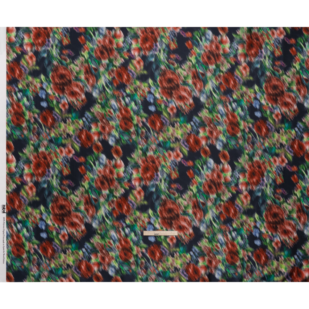 Polyester Mikado - Red, Green and Navy Floral Diagonal Striations - Mood Exclusive Flickering Field Print