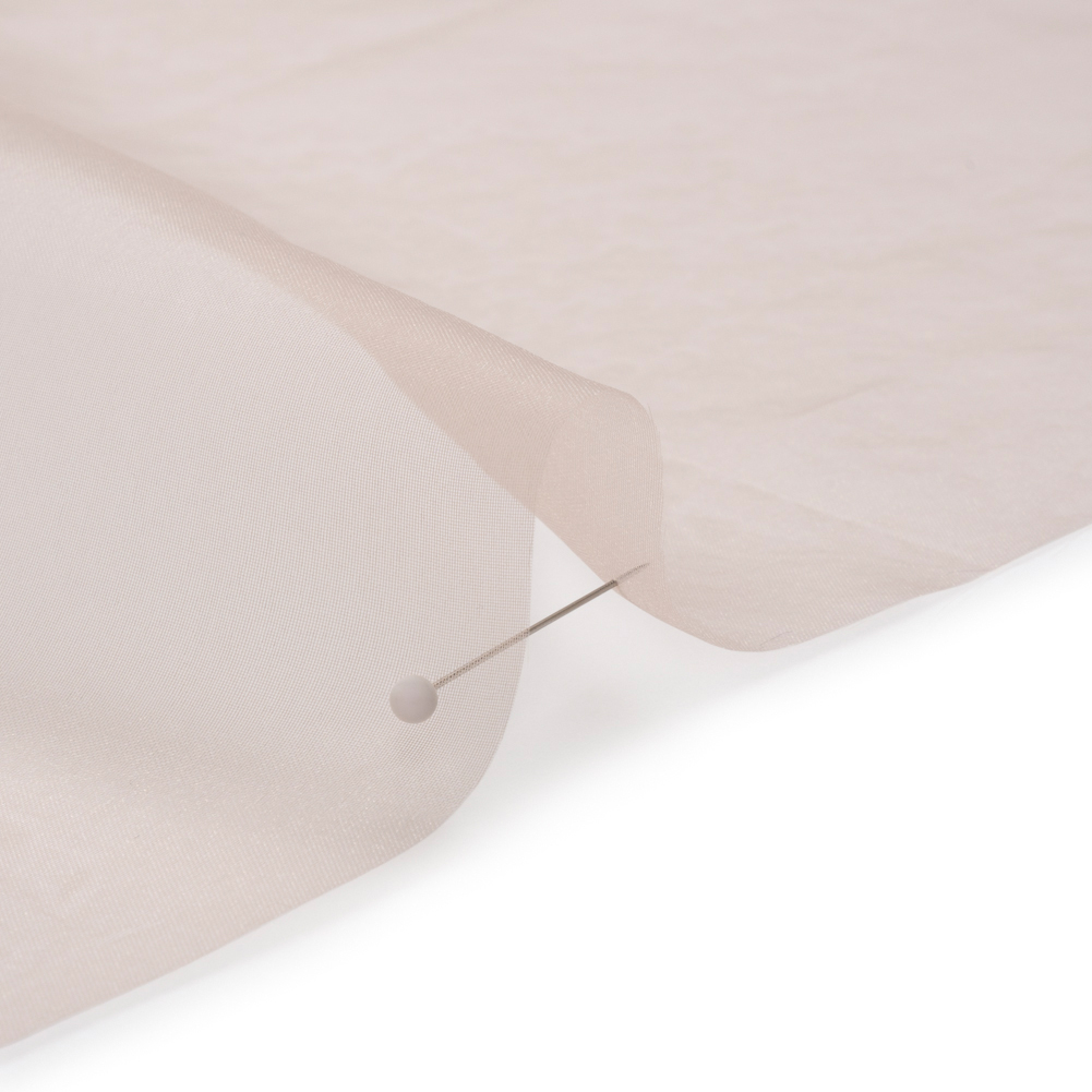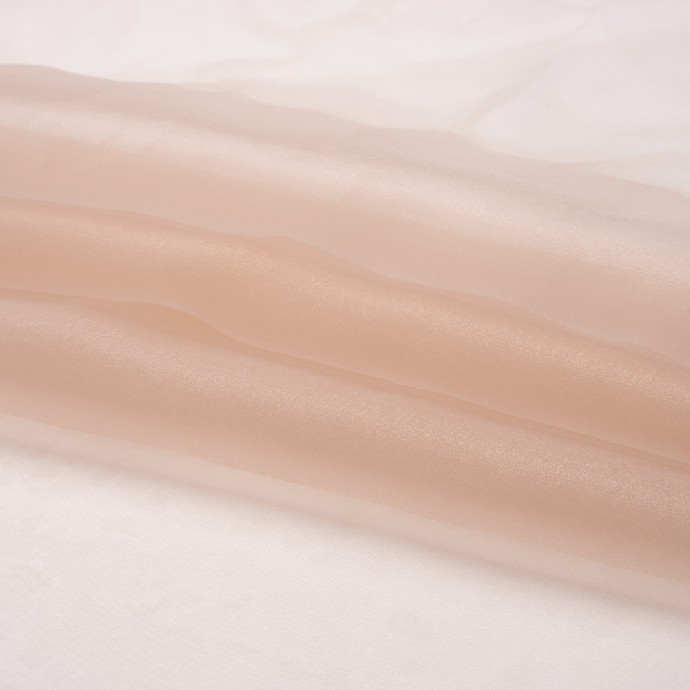We have a blush on this Blush Polyester Organza! Ideal for inserts and overlays, it has a grainy grainy hand, crisp drape, and sheer nature.