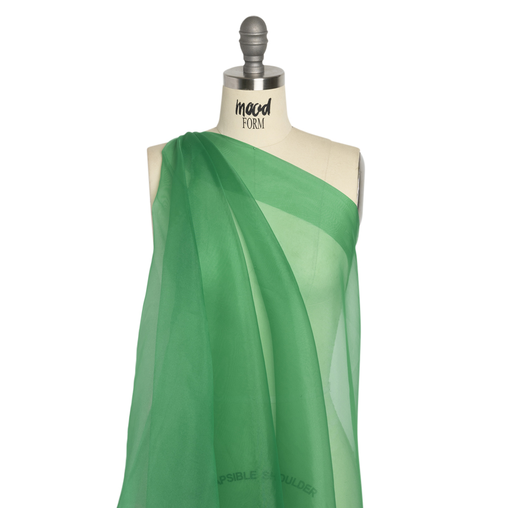 Gatsby believed in the green light almost as much as we believe in this Kelly Green Polyester Organza! Ideal for inserts and overlays, it has a grainy hand, crisp drape, and sheer nature.Suggested Projects: Dresses, Skirts, Evening WearContent: 100% PolyesterStretch: NoneOpacity: SheerCreate enchanting pieces with this organza. The bright green face has a stunning luster and a grainy hand. Used as a sheer insert or an overlay, the crisp drape adds volume to dresses and skirts. For the fashion designer and home sewist alike, this affordably elegant fabric produces high-quality garments for formal events, weddings, costume parties, and more! Depending on the application, a lining may be desired.Pair premium quality with affordability in our Exclusive Basics Collections! Explore colorful polyester organza and more, perfect for creating special occasion looks on a budget.