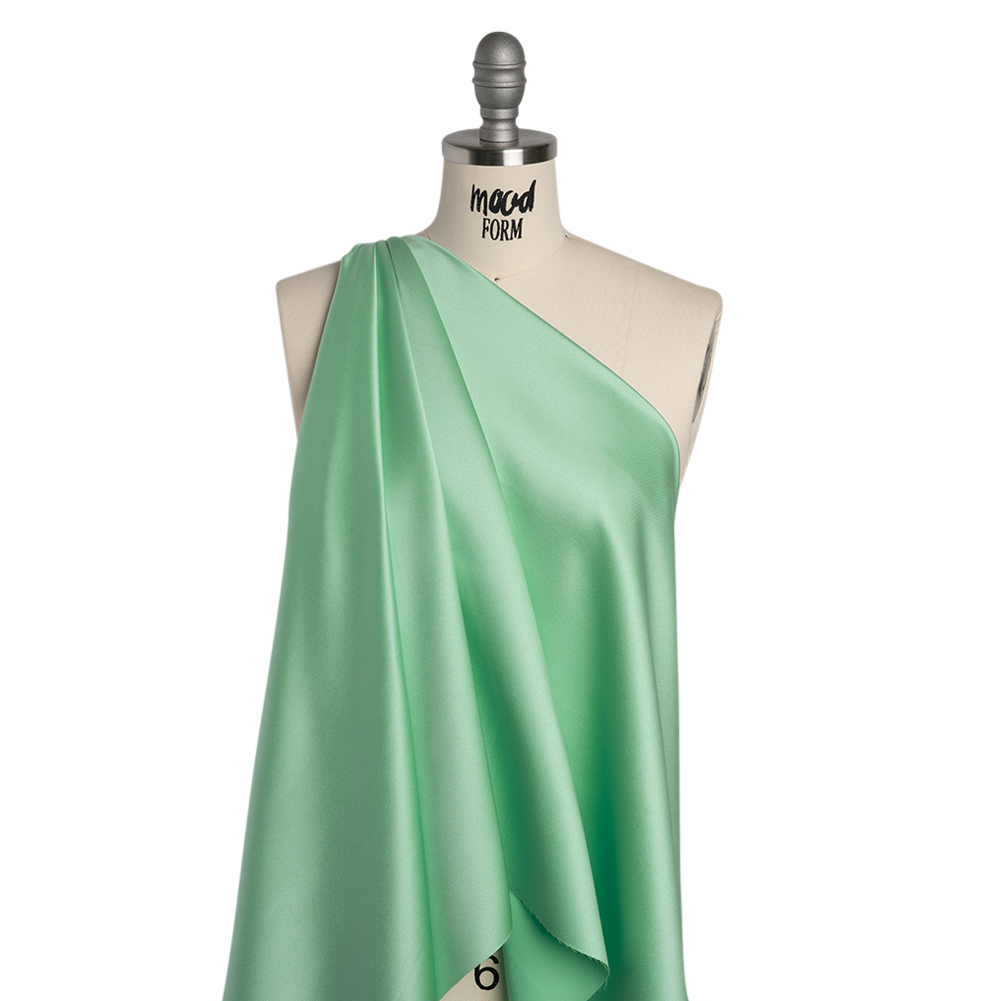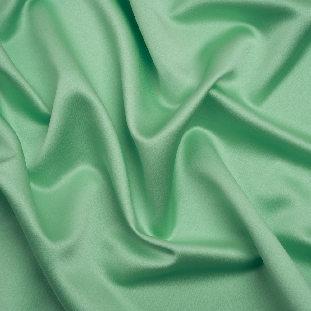 This Baja Aqua Polyester Satin flows like liquid paradise. Featuring a smooth hand and fluid drape, it’s ideal for billowing evening attire.Suggested Projects: Dresses, Skirts, Blouses, LiningsContent: 100% PolyesterStretch: NoneOpacity: OpaqueThis aqua-green satin glimmers and shines like a serene lagoon—inviting you into its alluring embrace. Craving the luxe look of silk satin without the stress of care and cost? Enter this glossy polyester satin collection—lightweight, silky-smooth, and effortlessly chic. Fully opaque and with no stretch, it echoes the elegance of a matte duchess satin, offering a sleek hand, radiant sheen, and fluid drape. From aisle-worthy gowns to weekday blouses, statement costumes to polished linings, this fabric brings accessible glamour to every stitch of your wardrobe. Opaque, a lining is not necessary but may be added if structure is desired.