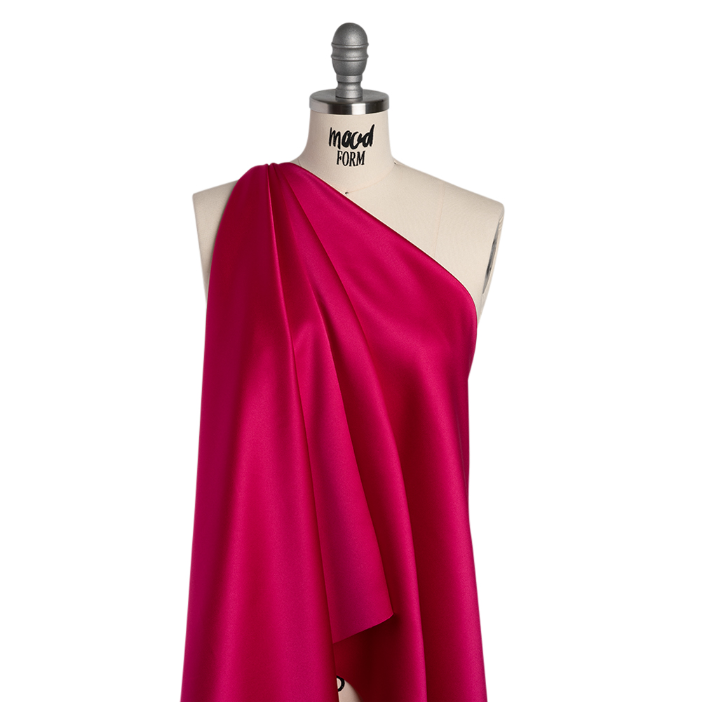 This Cerise Polyester Satin is the cherry on top of your next design. Featuring a smooth hand and fluid drape, it’s ideal for billowing evening attire.Suggested Projects: Dresses, Skirts, Blouses, LiningsContent: 100% PolyesterStretch: NoneOpacity: OpaqueThis cerise pink satin was cherry-picked for your next masterpiece. Craving the luxe look of silk satin without the stress of care and cost? Enter this glossy polyester satin collection—lightweight, silky-smooth, and effortlessly chic. Fully opaque and with no stretch, it echoes the elegance of a matte duchess satin, offering a sleek hand, radiant sheen, and fluid drape. From aisle-worthy gowns to weekday blouses, statement costumes to polished linings, this fabric brings accessible glamour to every stitch of your wardrobe. Opaque, a lining is not necessary but may be added if structure is desired.