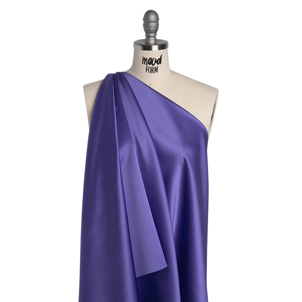 This Crepe Purple Polyester Satin will reign supreme in your closet. Featuring a smooth hand and fluid drape, it’s ideal for billowing evening attire.Suggested Projects: Dresses, Skirts, Blouses, LiningsContent: 100% PolyesterStretch: NoneOpacity: OpaqueAscend the throne in this purple satin. Craving the luxe look of silk satin without the stress of care and cost? Enter this glossy polyester satin collection—lightweight, silky-smooth, and effortlessly chic. Fully opaque and with no stretch, it echoes the elegance of a matte duchess satin, offering a sleek hand, radiant sheen, and fluid drape. From aisle-worthy gowns to weekday blouses, statement costumes to polished linings, this fabric brings accessible glamour to every stitch of your wardrobe. Opaque, a lining is not necessary but may be added if structure is desired.