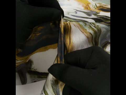 Go with the flow in our Mood Exclusive Molten Moves Polyester Satin—where color melts like magma into molten style for fluid dresses and sweeping skirts.Suggested Projects: Dresses, Skirts, Blouses, Linings Content: 100% Polyester Stretch: NoneOpacity: Slightly Translucent This mesmerizing print features richly blended tones of muted blue, green, and yellow ochre that ripple and dissolve into one another, evoking the molten movement of lava or the dreamy drift of colored smoke. With no stretch and a softly luminous surface, this polyester satin glides effortlessly into bias-cut slip dresses, gathered midi skirts, dramatic bell-sleeve blouses, or even soft linings that echo the palette beneath. Slightly translucent with a smooth, cool hand and gentle drape, it’s a striking choice for designs that play with motion and light. For more opaque applications, a lining is recommended.