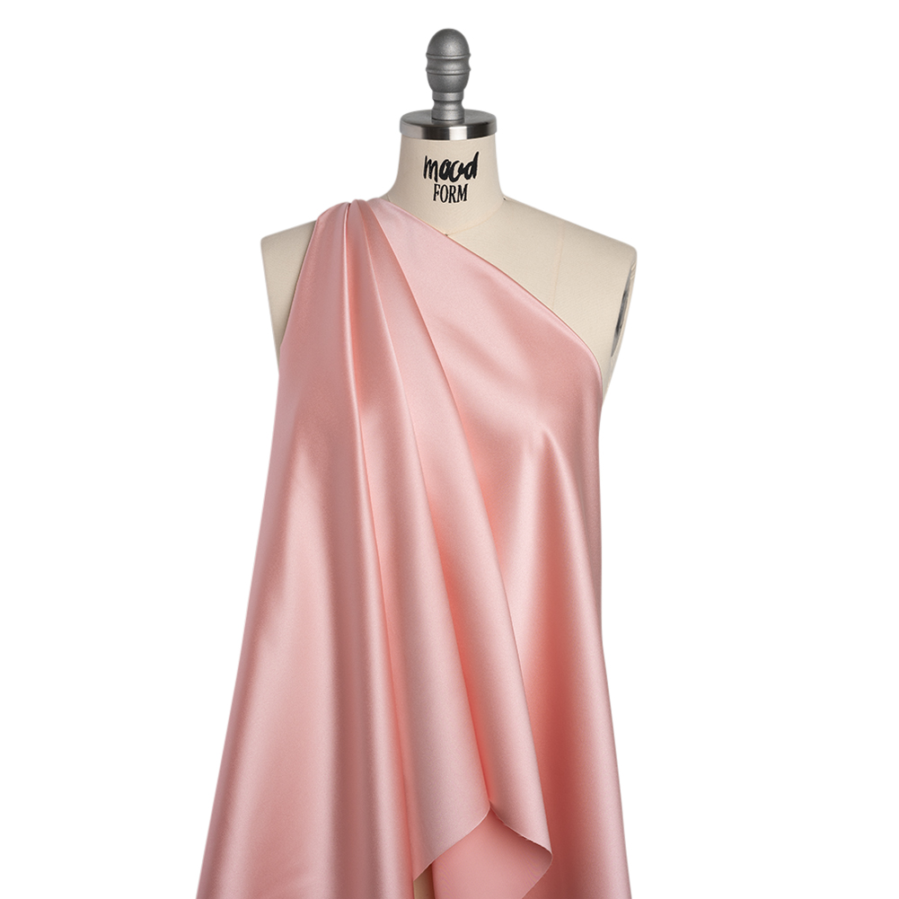 Transform into a prima ballerina in this Premier Rose Polyester Satin. Featuring a smooth hand and fluid drape, it’s ideal for billowing evening attire.Suggested Projects: Dresses, Skirts, Blouses, LiningsContent: 100% PolyesterStretch: NoneOpacity: OpaqueThis premier rose satin evokes whispers of romance, the joy of love letters written and received, and days spent pirouetting and plieing across a ballet studio. Craving the luxe look of silk satin without the stress of care and cost? Enter this glossy polyester satin collection—lightweight, silky-smooth, and effortlessly chic. Fully opaque and with no stretch, it echoes the elegance of a matte duchess satin, offering a sleek hand, radiant sheen, and fluid drape. From aisle-worthy gowns to weekday blouses, statement costumes to polished linings, this fabric brings accessible glamour to every stitch of your wardrobe. Opaque, a lining is not necessary but may be added if structure is desired.