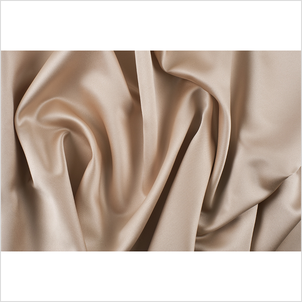 Drape yourself in luxury with this Pure Cashmere Beige Polyester Satin. Featuring a smooth hand and fluid drape, it’s ideal for billowing evening attire.Suggested Projects: Dresses, Skirts, Blouses, LiningsContent: 100% PolyesterStretch: NoneOpacity: OpaqueThis pure cashmere-colored satin is just as sought out for as its namesake. Trying to channel the look of a silk satin without the stress of care and cost? Here we have a collection of glossy polyester satins which are thin in structure and oh-so-smooth. Completely opaque and with no stretch, this material is very similar to a duller finished duchess satin. A sleek hand, lustrous face, and full drape combine to deliver affordable elegance to your wardrobe: from weddings to workdays, formalwear to costumes, fashion dignified gowns, A-line dresses, blouses, jacket linings, and more.Note:This fabric is considered flame retardant under NFPA 701 standards and testing, so you can feel safe while you look fab!