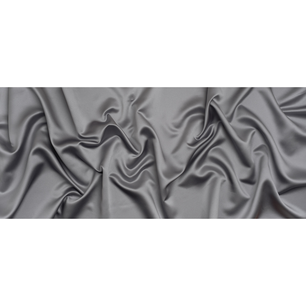 Metal and moonlight meld atop this Ultra Platinum Polyester Satin in an unforgettable aria. Featuring a smooth hand and fluid drape, it’s ideal for billowing evening attire.Suggested Projects: Dresses, Skirts, Blouses, LiningsContent: 100% PolyesterStretch: NoneOpacity: OpaqueThe future of fashion unfurls from this platinum gray satin. Craving the luxe look of silk satin without the stress of care and cost? Enter this glossy polyester satin collection—lightweight, silky-smooth, and effortlessly chic. Fully opaque and with no stretch, it echoes the elegance of a matte duchess satin, offering a sleek hand, radiant sheen, and fluid drape. From aisle-worthy gowns to weekday blouses, statement costumes to polished linings, this fabric brings accessible glamour to every stitch of your wardrobe. Opaque, a lining is not necessary but may be added if structure is desired.