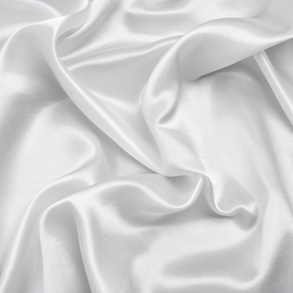 Your special moment deserves the most special look, so use this White Polyester Satin to achieve it. Featuring a smooth hand and fluid drape, it’s ideal for billowing evening attire.Suggested Projects: Dresses, Skirts, Blouses, LiningsContent: 100% PolyesterStretch: NoneOpacity: Slightly TranslucentWhether you’re walking down the aisle or the red carpet, this white satin is ready to be your plus one. Perfectly glossy and silky-smooth, its sleek hand and voluminous drape easily transform into show-stopping eveningwear such as aisle-worthy gowns, weekday blouses, polished linings, or statement costumes—bringing accessible glamour to life with every stitch. Slightly translucent, we recommend pairing it with an equally luxurious lining for a flawless finish.