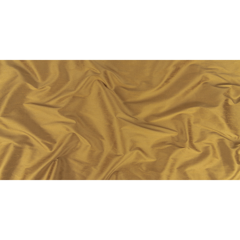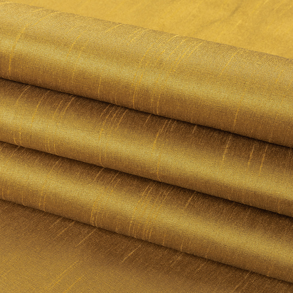 You'll have to rush to pick up a few yards of this irresistible Gold Polyester Shantung! Beaming with sophistication, shantung is known for its striated tactile hand and luminous sheen. Used primarily in evening wear, its shine is met with a flexible and voluminous drape making it perfect for cocktail dresses and gowns. Thin and lightweight, it is translucent and may require a lining. This collection comes in 35+ different colors, so you are sure to find the right shade!Please Note: The dye lot of this fabric has changed as of June 2025. If you had previously ordered this material, please order a swatch to ensure the new dye lot meets your color requirements.