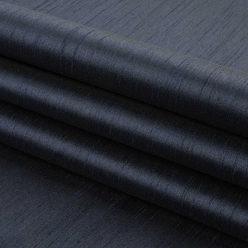 Perennially stylish, Mood's Navy Polyester Shantung will create your most stunning eveningwear. Beaming with sophistication, shantung is known for its striated tactile hand and luminous sheen. Used primarily in evening wear, its shine is met with a flexible and voluminous drape making it perfect for cocktail dresses and gowns. Thin and lightweight, it is translucent and may require a lining. This collection comes in 35+ different colors, so you are sure to find the right shade!