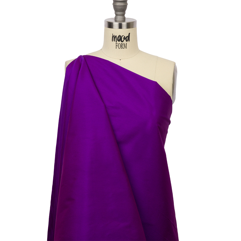 Feel flawless in our queenly Royal Purple Plain Dyed Polyester Taffeta! Characteristically crisp with a voluminous drape, taffeta is best when it is featured in the spotlight. Perfect for evening and cocktail attire, it has an all-over sheen that is hard to not love. Thin and lightweight, it is easy to ruche, ruffle and tailor into your dream dress! Translucent, insert a lining for more opacity. This collection comes in an array of colors; note that some are solid in tone while others are iridescent.