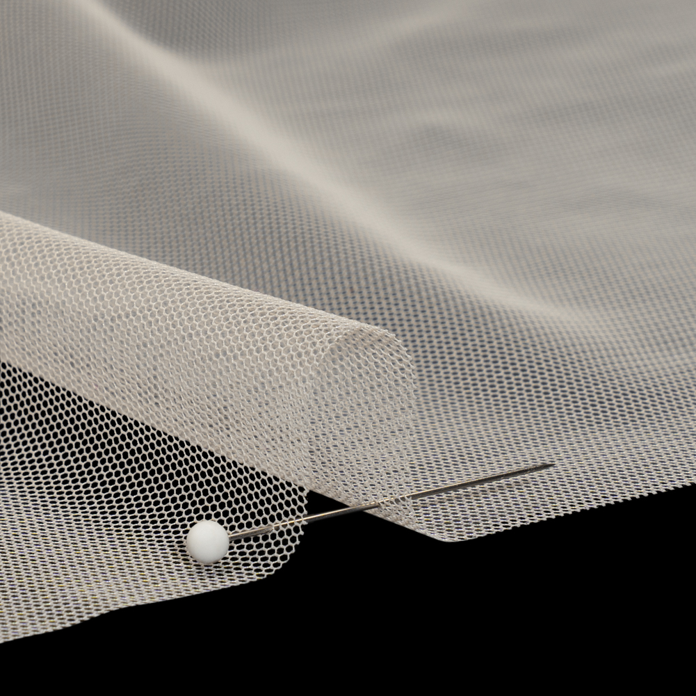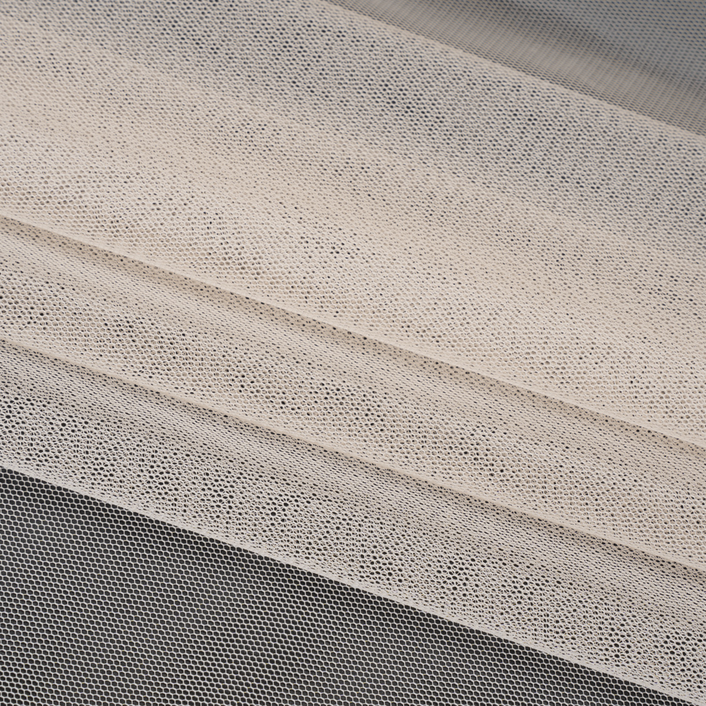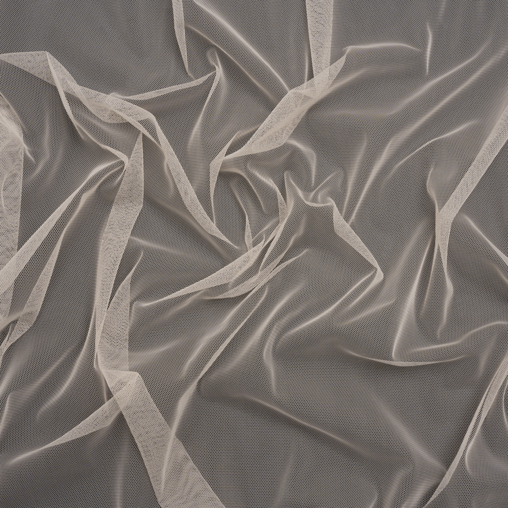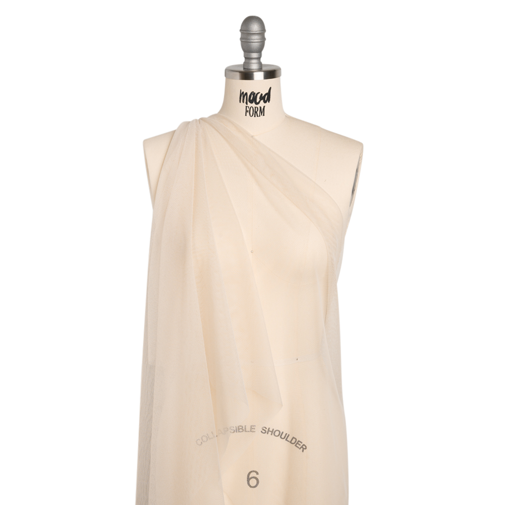 Your next fashion recipe calls for this Vanilla Polyester Tulle—featuring a dry, grainy hand and semi-structured yet airy drape.Suggested Projects: Skirts, Dresses, SleevesContent: 100% PolyesterStretch: Slight Mechanical GiveOpacity: SheerAdd some flavor to your garments with this vanilla beige tulle. Dry and grainy in hand, this polyester tulle yearns to bring new life and volume to your garments with its semi-structured yet airy drape. With a slight mechanical give through the weft, it lends itself well to underlays for skirts, gowns and dresses—or poofy sleeves and high-fashion designs! Sheer, we suggest use with a lining, layering, or as an underlay.