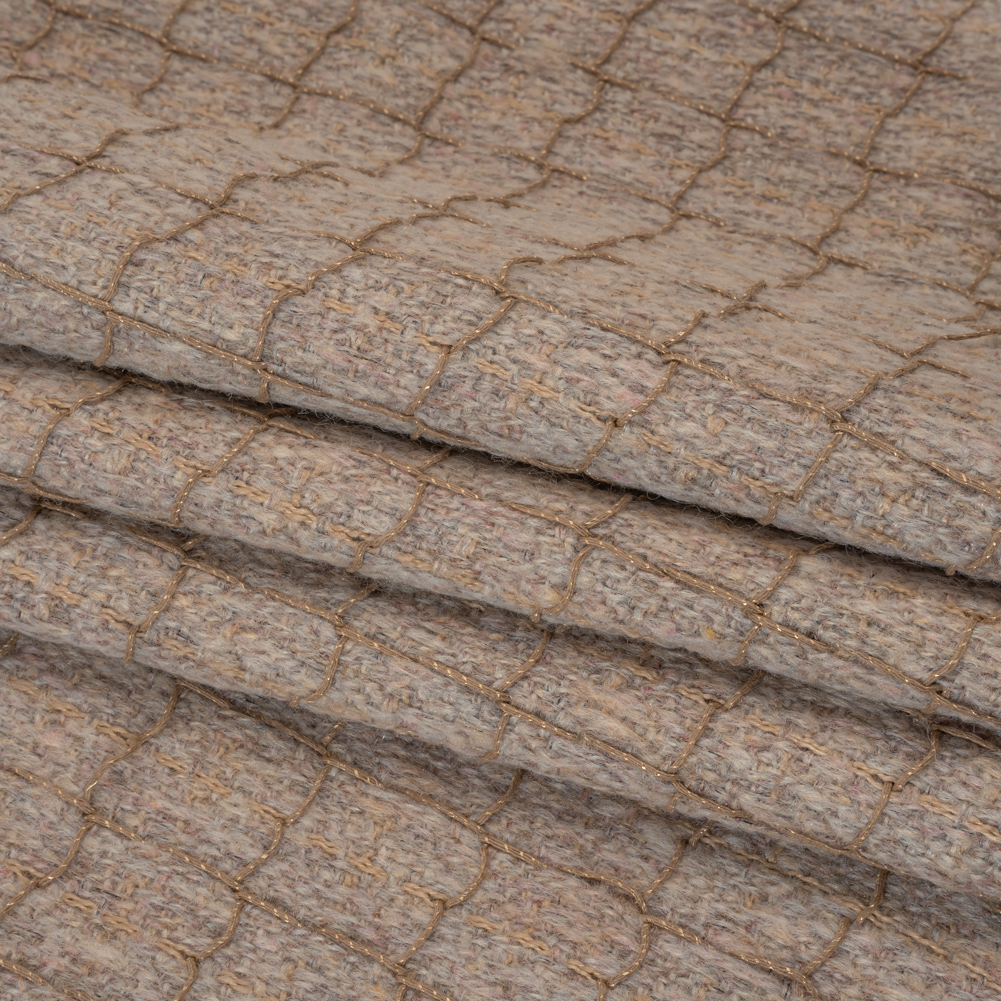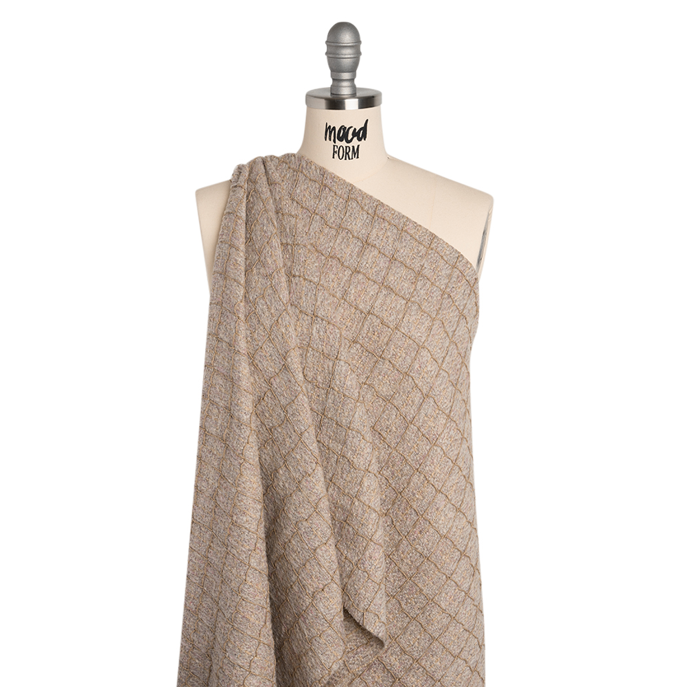 Be on the taupe of your game when you wear this Ribbed Windowpane Check Polyester Tweedy Woven—featuring a tactile hand and supple drape.Suggested Projects: Jackets, Skirts, Dresses, CoatsContent: PolyesterStretch: NoneOpacity: Mostly OpaqueAgainst a taupe background, dusty mauve threads create a raised, windowpane check design. As the color combination exudes maturity, the tactile hand and supple drape set you up for garments that effortlessly command any room. Set your shoulders back, raise your chin, and slide into confidence with stately suit jackets with matching skirts or button-up dresses. Mostly opaque, we suggest a lining to increase opacity, comfort, and structure.