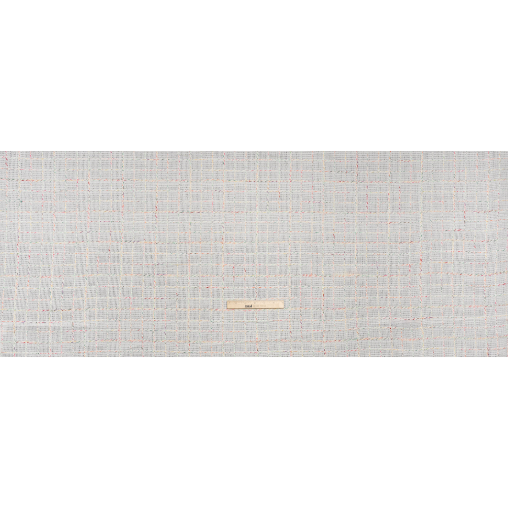 Polyester Tweedy Woven - White and Rainbow Ribbed Windowpane Check - Deadstock