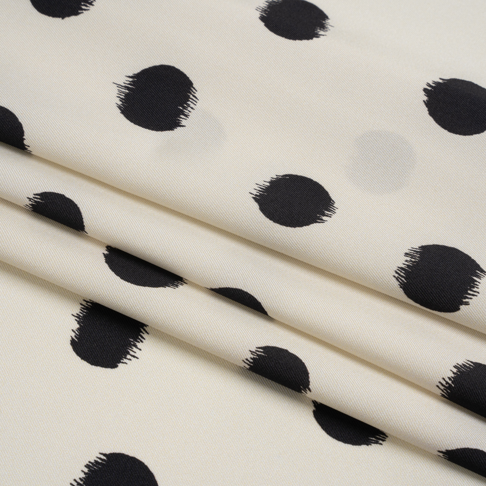 Polyester Twill – Cream and Black Brushed Polka Dots – Made in Italy
