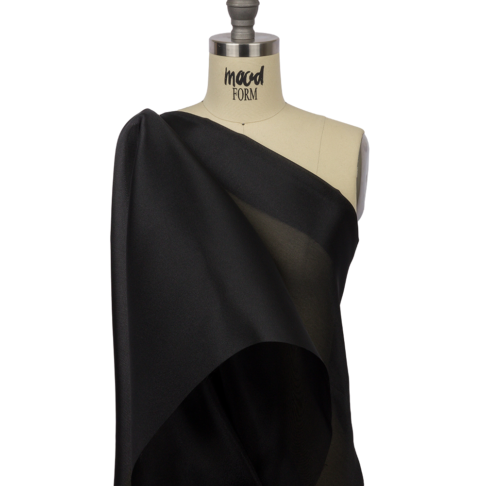 A timeless color looks the best in our Quinn Black Shimmering Polyester Twill Organdy.
