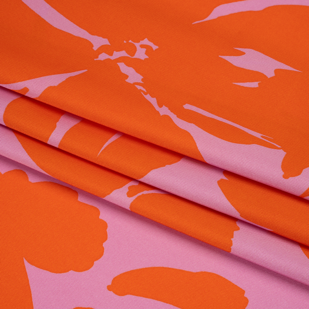 The tropics call from this Florals and Striped Borders Polyester Twill, featuring a smooth, soft hand and flexible drape.Suggested Projects: Dresses, Skirts, Shirts, LiningsContent: PolyesterStretch: NoneOpacity: Slightly TranslucentRed-orange florals float through a pink background, bordered with a lace-like design striped border. Featuring the distinctive diagonal pattern of a twill weave and a lovely subtle sheen, its hand is extremely soft and smooth with a slight crispness. With a flexible drape, create light skirts and dresses with a plethora of movement, or use it as a lining for other materials! Somewhat translucent, consider adding a lining when using this twill as the main fabric, both for opacity and to add structure where needed.