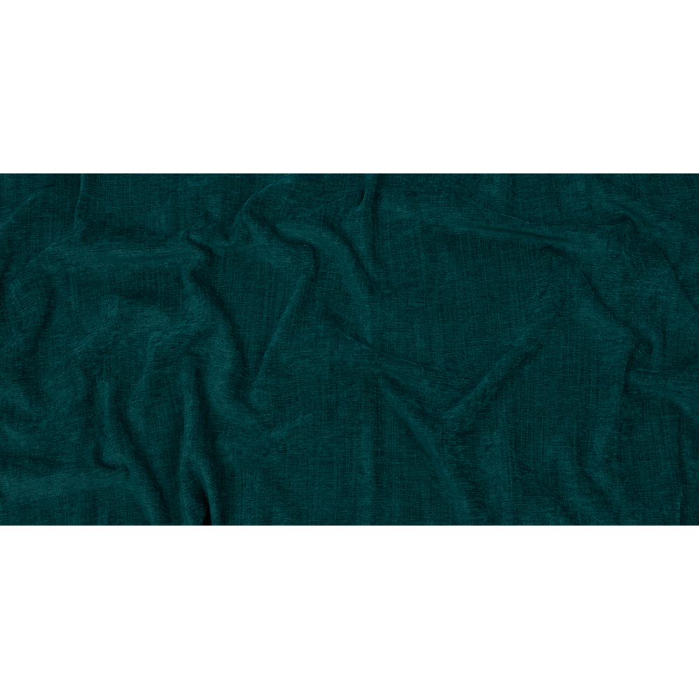 Teal away with to tropical locals right at home with this British Imported Peacock Polyester Upholstery Chenille! Originating in France, chenille is composed of fuzzy yarns woven together to create a velvety feel, with this particular variety composed in a plain weave with a rich blue green coloration.