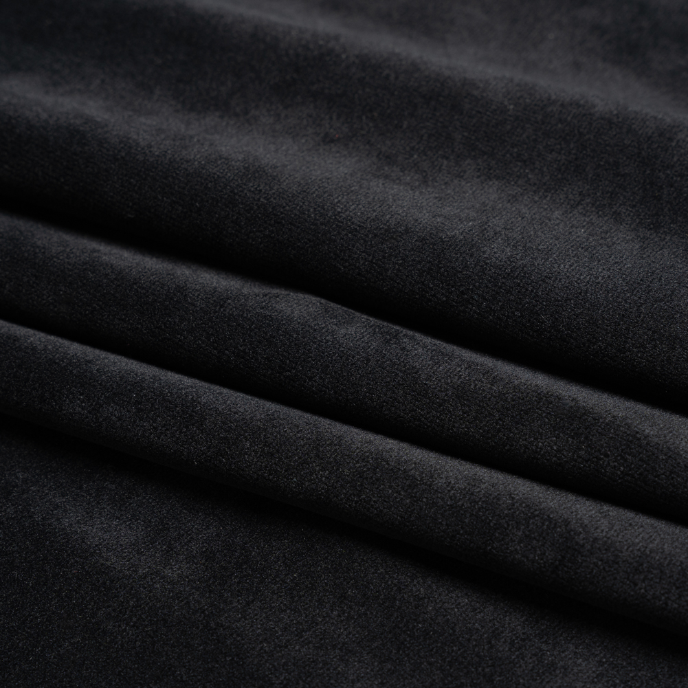 Create bold designs with this Thornton Black Polyester Home Decor Velvet! With a plush hand, subtle luster, and magnificent drape, this is a textile that is consistently tied to luxe designs and couture creations.