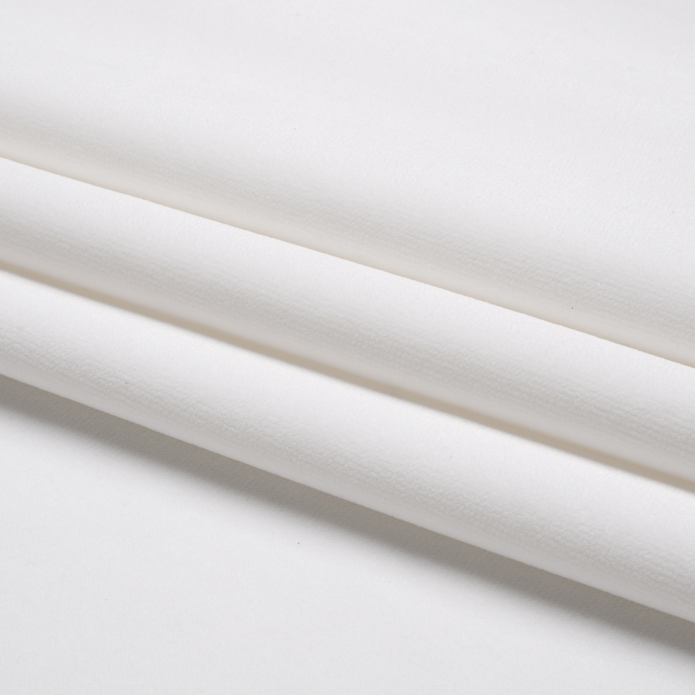 Clean and polished, crack into this Thornton Coconut Polyester Home Decor Velvet to get your interior design projects going! With a plush hand, subtle luster, and magnificent drape, this is a textile that is consistently tied to luxe designs and couture creations. Its back features a sleek, woven texture. To bring an elegant maturity to bedrooms, think tufted headboards, throw pillows, and long, pooling curtains (and light some candles for an added layer of warmth!). A velvet couch immediately becomes the centerpiece of a living room, equal in modern sophistication as it is in comfort. In a wonderful white color, find it impossible to plan an upholstery, bedding, or decor project without the soft texture of velvet. Completely opaque—a lining may be desired for added structure.
