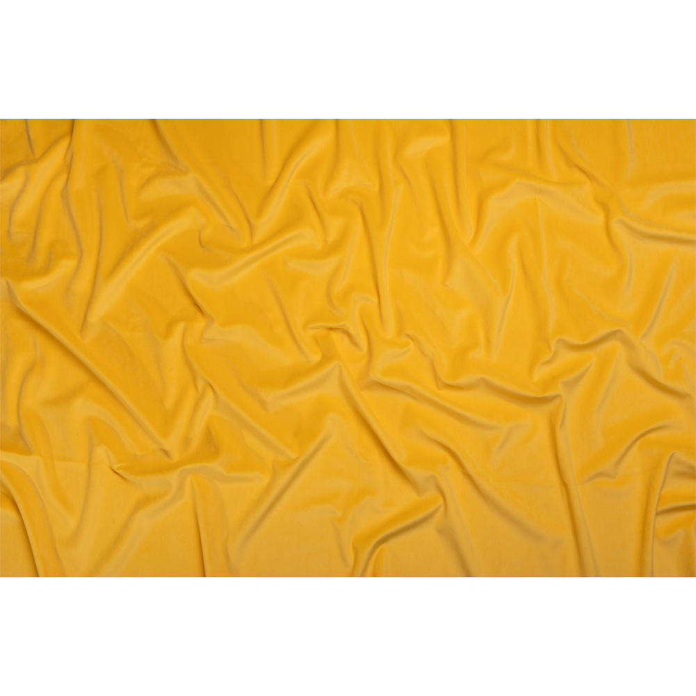 Make a sweet statement with this Thornton Mango Polyester Home Decor Velvet! With a plush hand, subtle luster, and magnificent drape, this is a textile that is consistently tied to luxe designs and couture creations. Its back features a sleek, woven texture. To bring an elegant maturity to bedrooms, think tufted headboards, throw pillows, and long, pooling curtains (and light some candles for an added layer of warmth!). A velvet couch immediately becomes the centerpiece of a living room, equal in modern sophistication as it is in comfort. In a bright yellow color, find it impossible to plan an upholstery, bedding, or decor project without the soft texture of velvet. Completely opaque—a lining may be desired for added structure.
