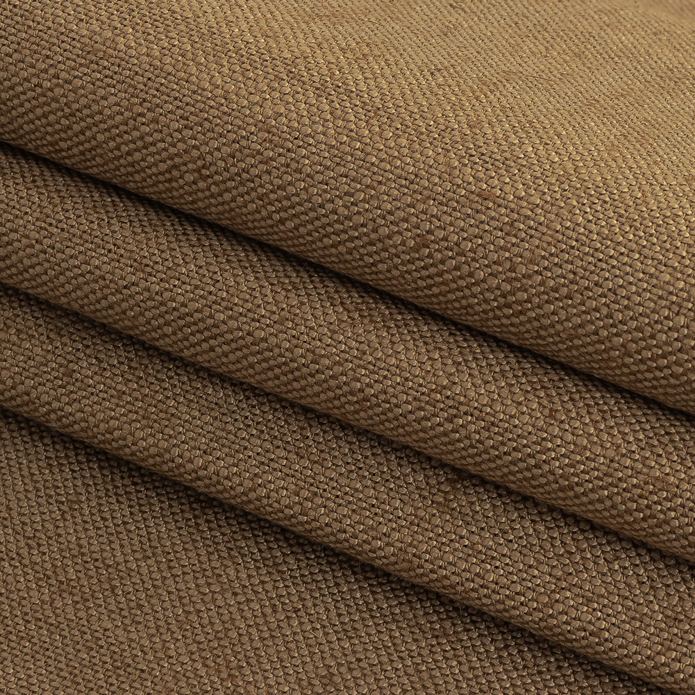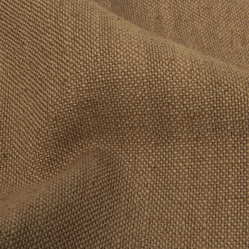Welcome a sweet surprise into the comfort of your home with this British Imported Caramel Polyester, Viscose and Linen Woven! Boasting a visible plain-weave structure, this slightly golden, light brown woven with slight variations in hue promises a soft, tactile hand with a slubbed texture typical of linen, as well as a malleable drape. Ideal for all your home decor needs, fashion pleated drapes and curtains, cover couches and ottomans, or create eye-catching throw pillows! Due to its slightly open weave, this medium-weight fabric allows some light through, so consider adding a lining for complete opacity or additional structure. Please note that because of the way that the selvage is woven, only 55 inches of the total 57-inch width are usable.