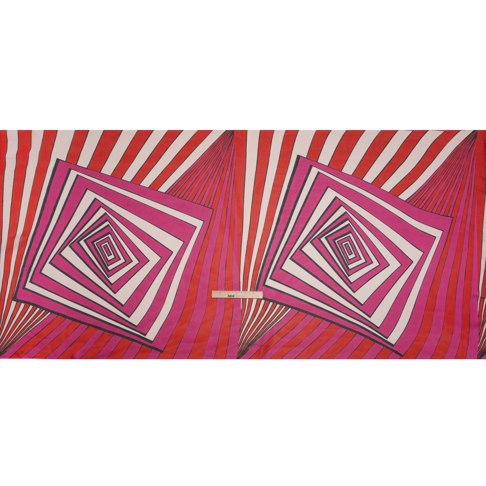Polyester Voile Panel - Pink, Red and Cream Stripes and Hypnotic Squares - Made in Italy