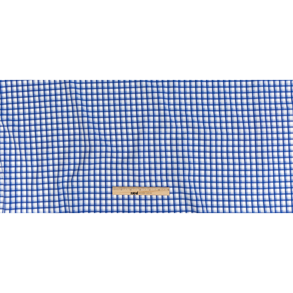 A gradient of blue lines crisscross each other spanning the face of this Premium Baja Blue and Hydrangea Shadow Check and Chevron Cotton Dobby Shirting. Soft and smooth in hand, its primary navy checkered design is shadowed by faded blue lines and decorated by a chevron patterning that nicely complements its slightly lustrous finish. Lightweight and without stretch, its single-ply composition boasts a thread count of 60-70, which makes this the perfect material for a multitude of shirting applications. Create simple button-up shirts and blouses for the work week, or go for something more sophisticated, like billowing shirt dresses with angel sleeves that accentuate its relaxed, flexible drape. Slightly translucent, a lining may be desired for true opacity depending on its application.