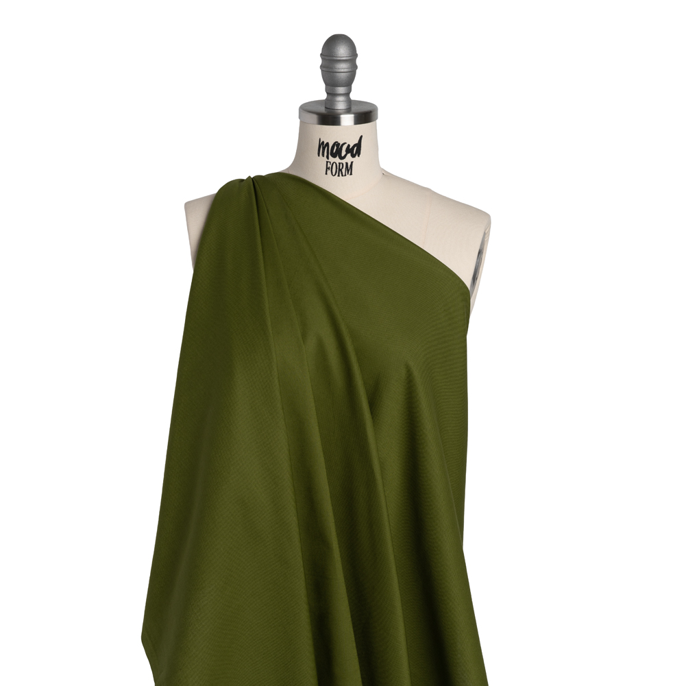 Your designs with this Green Pepper Premium Solid Quilting Cotton will always be garden fresh—featuring a smooth hand and supple drape.Suggested Projects: Dresses, Shirts, Jackets, Quilts, Light Home DecorContent: 100% CottonStretch: NoneOpacity: Slightly TranslucentYour harvest will be bountiful with this green pepper quilting cotton. With a smooth hand, supple drape, and no stretch, this fabric is crafted for intricate quilt work—a stable weave and silky finish are perfect for anything from classic piecework and wholecloth quilting to appliqués and art quilts to English paper piecing—yet it effortlessly lends itself to lightweight home décor, craft, and fashion projects, too.Whether you’re designing breezy shift dresses, gathered patchwork skirts, or crisp button-downs and shorts, this fabric brings a touch of elegance to every stitch—or dream bigger with flowing floor-length gowns or sharply tailored jackets and trousers, perfect for an evening out. Slightly translucent, a lining is recommended for added opacity and a refined finish.