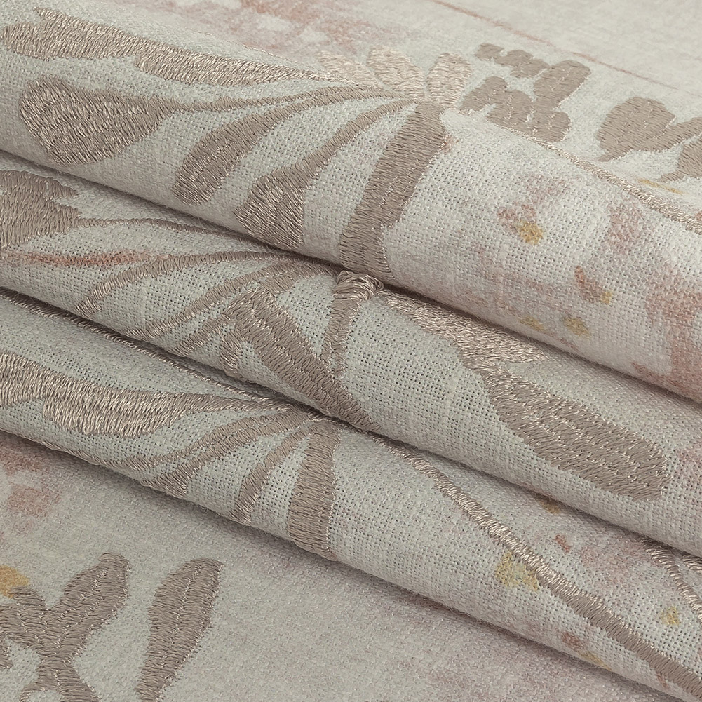 Printed and Embroidered Drapery Canvas - Dusky Pink Floral - British Imported