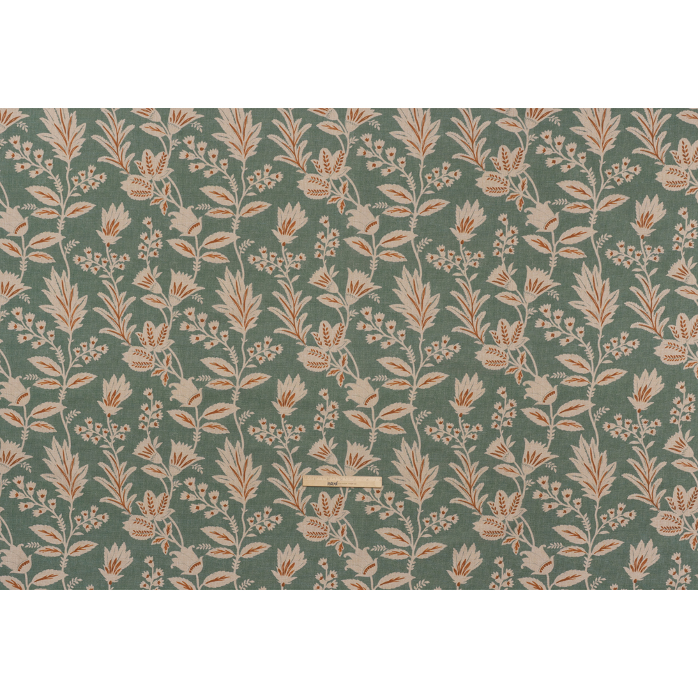 You’ll never want to leaf home when you have this Kingfisher Leafy Sprays and Little Flowers Printed Cotton Canvas—featuring a smooth, lightly tactile hand and semi-structured drape.Suggested Projects: Armchairs, Couches, Headboards, DraperiesContent: 100% CottonStretch: NoneOpacity: Mostly OpaqueAcross a calming deep teal canvas, delicate beige leaves and tiny blossoms unfurl, swaying as if caught in a gentle breeze, their intricate silhouettes enhanced with sienna brown accents. The artist in you is drawn to canvas—a fabric that sways between rustic and refined, offering itself easily to living rooms, kitchens, bedrooms, and even wardrobes. With a smooth, lightly tactile hand and semi-structured drape, it’s ideal for upholstery and drapery projects like armchairs, headboards, and curtains, or go the fashion route with structured jackets and tote bags! Mostly opaque, a lining will increase opacity and structure.