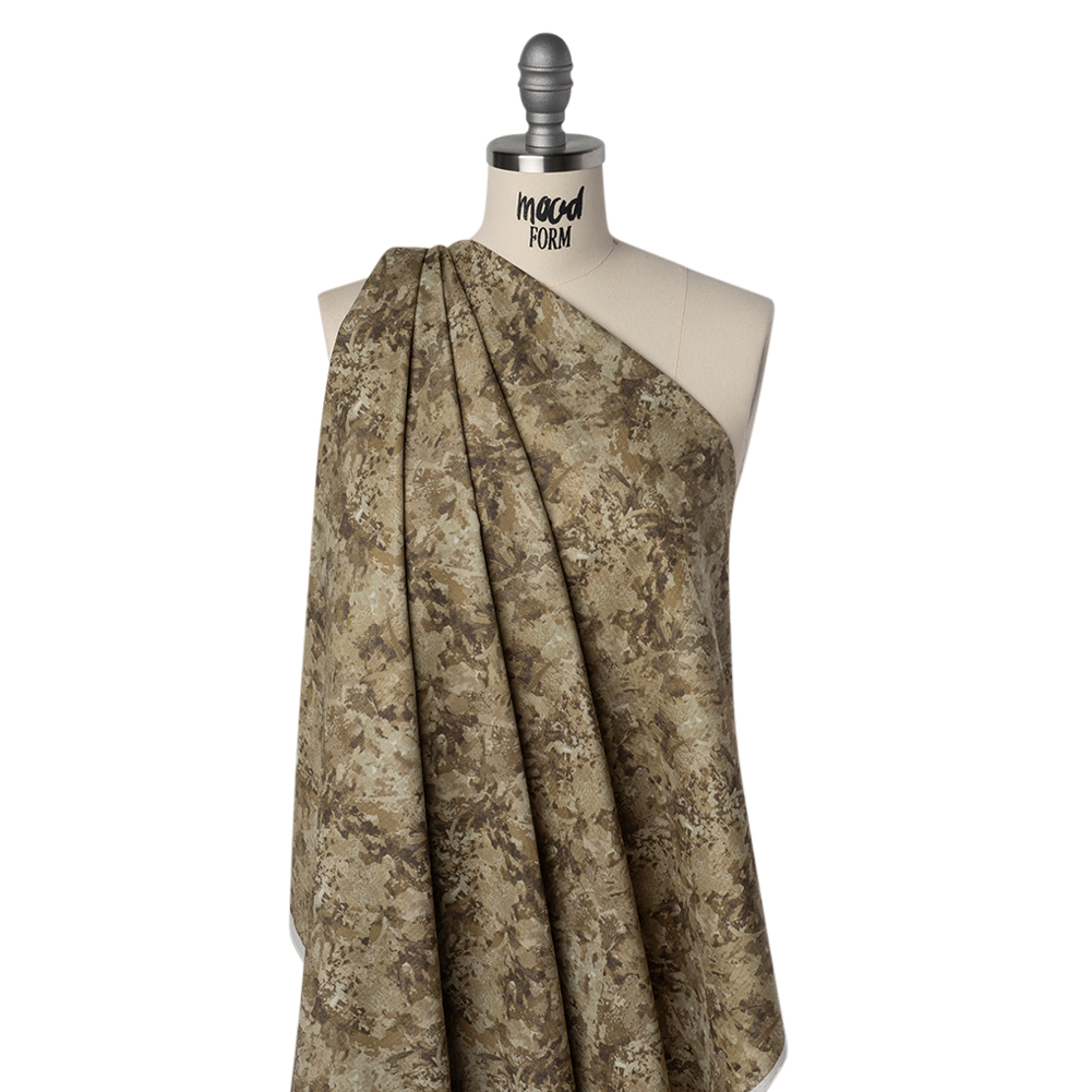 Sit back and relax atop the natural tones of this Flax Painterly Abstract Printed Quilting Cotton—featuring a smooth hand and supple drape.Suggested Projects: Dresses, Shirts, Jackets, Quilts, Light Home DecorContent: 100% CottonStretch: NoneOpacity: Slightly TranslucentGaze upon the abstract swirls of beige, pale green, and brown paint strokes—each one a brush of possibility, inviting you to find the masterpiece hidden within. With a smooth hand, supple drape, and no stretch, this fabric is crafted for intricate quilt work—a stable weave and silky finish are perfect for anything from classic piecework and wholecloth quilting to appliqués and art quilts to English paper piecing—yet it effortlessly lends itself to lightweight home décor, craft, and fashion projects, too.Whether you’re designing breezy shift dresses, gathered patchwork skirts, or crisp button-downs and shorts, this fabric brings a touch of elegance to every stitch—or dream bigger with crisp button-up and pleated skirt sets or sharply tailored jackets and trousers, perfect for a day at the country club. Slightly translucent, a lining is recommended for added opacity and a refined finish.