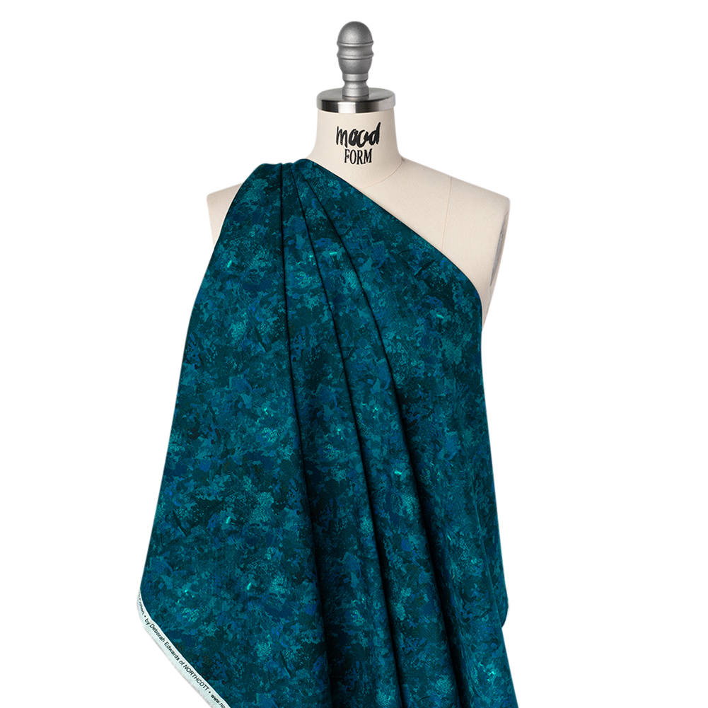 This Juniper Painterly Abstract Printed Quilting Cotton is a canvas kissed by the forest—featuring a smooth hand and supple drape.Suggested Projects: Dresses, Shirts, Jackets, Quilts, Light Home DecorContent: 100% CottonStretch: NoneOpacity: Slightly TranslucentGaze upon the abstract swirls of deep turquoise, teal, and marine blue paint strokes—each one a brush of possibility, inviting you to find the masterpiece hidden within. With a smooth hand, supple drape, and no stretch, this fabric is crafted for intricate quilt work—a stable weave and silky finish are perfect for anything from classic piecework and wholecloth quilting to appliqués and art quilts to English paper piecing—yet it effortlessly lends itself to lightweight home décor, craft, and fashion projects, too.Whether you’re designing breezy shift dresses, gathered patchwork skirts, or crisp button-downs and shorts, this fabric brings a touch of elegance to every stitch—or dream bigger with crisp button-up and pleated skirt sets or sharply tailored jackets and trousers, perfect for a day at the country club. Slightly translucent, a lining is recommended for added opacity and a refined finish.