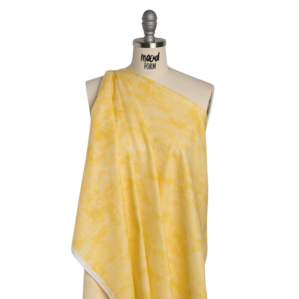 This Custard Fresco Texture Printed Quilting Cotton is sure to whip up delicious creations—featuring a smooth hand and supple drape.Suggested Projects: Dresses, Shirts, Jackets, Quilts, Light Home DecorContent: 100% CottonStretch: NoneOpacity: TranslucentYou’ll paint a picture-perfect masterpiece with this custard yellow quilting cotton, printed with a soft fresco-inspired texture that adds just the right touch of artistic depth and flair. With a smooth hand, supple drape, and no stretch, this fabric is crafted for intricate quilt work—a stable weave and silky finish are perfect for anything from classic piecework and wholecloth quilting to appliqués and art quilts to English paper piecing—yet it effortlessly lends itself to lightweight home décor, craft, and fashion projects, too.Whether you’re designing breezy shift dresses, gathered patchwork skirts, or crisp button-downs and shorts, this fabric brings a touch of elegance to every stitch—or dream bigger with flowing floor-length gowns or sharply tailored jackets and trousers, perfect for an evening out or a day at the country club. Slightly translucent, a lining is recommended for added opacity and a refined finish.