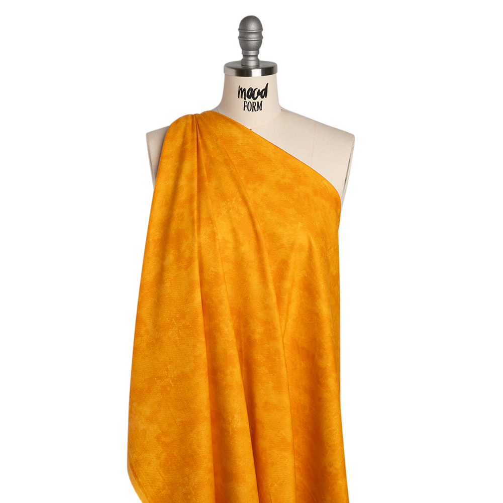 This Tumeric Fresco Texture Printed Quilting Cotton provides just the right amount of spice and flavor for your projects—featuring a smooth hand and supple drape.Suggested Projects: Dresses, Shirts, Jackets, Quilts, Light Home DecorContent: 100% CottonStretch: NoneOpacity: Slightly TranslucentYou’ll paint a picture-perfect masterpiece with this turmeric orange quilting cotton, printed with a soft fresco-inspired texture that adds just the right touch of artistic depth and flair. With a smooth hand, supple drape, and no stretch, this fabric is crafted for intricate quilt work—a stable weave and silky finish are perfect for anything from classic piecework and wholecloth quilting to appliqués and art quilts to English paper piecing—yet it effortlessly lends itself to lightweight home décor, craft, and fashion projects, too.Whether you’re designing breezy shift dresses, gathered patchwork skirts, or crisp button-downs and shorts, this fabric brings a touch of elegance to every stitch—or dream bigger with flowing floor-length gowns or sharply tailored jackets and trousers, perfect for an evening out or a day at the country club. Slightly translucent, a lining is recommended for added opacity and a refined finish.